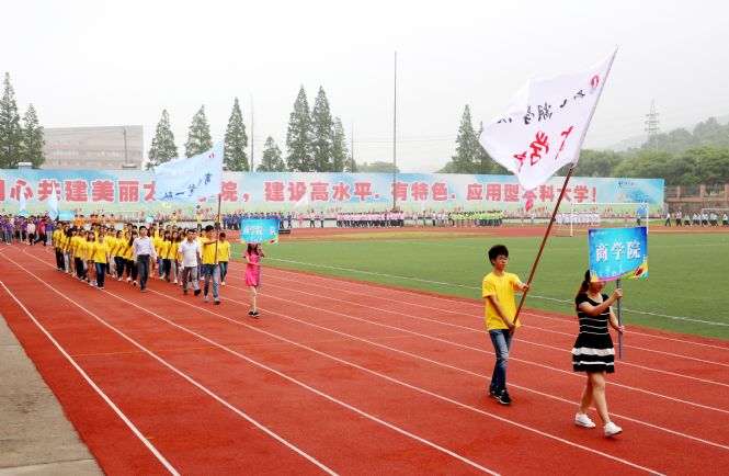 校党委书记金秋萍致开幕词,她指出,学校高度重视体育运动的开展,提升体育教育水平,开展阳光体育运动,全面提高学生身体素质,大力培养具有高尚情操、强健体魄的优秀人才。学校2015年运动会的隆重举行,是对全校师生员工体育运动水平的一次检阅,是对广大师生员工拼搏奋进、顽强意志、团队精神的一次考验,更是全校师生精神风貌的一次全面展示。她希望,全校师生齐心协力、团结奋进、锐意进取,共同把运动会开成团结、鼓劲、高效、文明的体育盛会、健康盛会,把运动会上所焕发出来的精神风貌,落实到今后的学习工作中去,以此为动力,凝心聚力,奋力拼搏,勇攀高峰,努力推动学校各项事业更好更快发展。