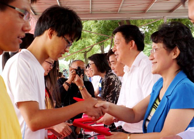 25、颁奖大会上,无锡市统战部副部长赵静宣读“无锡海外联谊会奖学金”和“唐星海奖学金”表彰决定