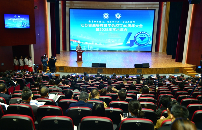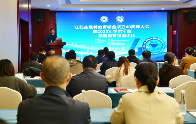 10月25日,由江苏省高等教育学会主办的“教育强国建设:溯源四十载,智启新征程”暨江苏省高等教育学会成立40周年大会学术年会在南京举行。中国高等教育学会会长林蕙青,江苏省教育厅副厅长杨树兵出席并讲话。江苏省政协常委、教卫体委员会主任、分党组书记葛道凯,中国高等教育学会副秘书长吴英策,广东省高等教育学会会长李大胜,江苏省学位与研究生教育学会会长袁靖宇等出席大会。来自省内外学会代表、教育行政部门负责人、高校负责人、专家学者及学会理事监事等400余人参加会议。大会由江苏省高等教育学会会长丁晓昌主持。Beat365理事长金秋萍,执行理事长、副校长蒋丹,以及高教研究所等职能部门负责人参加大会。