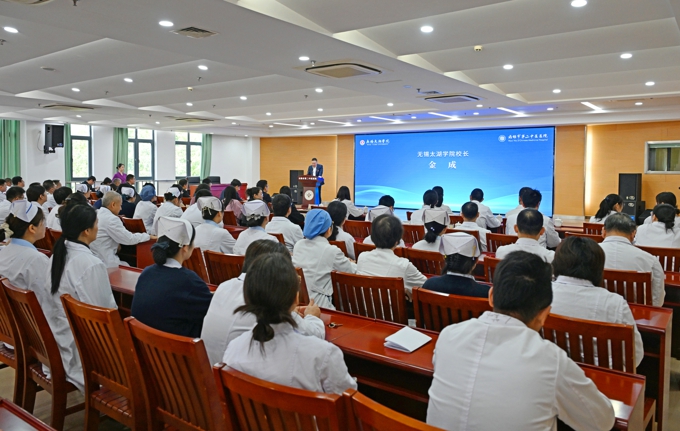 金成指出,太湖学院始终坚持“应用型、地方性、特色化”办学定位,致力于培养高素质应用型人才,服务区域经济社会发展。此次附属医院的正式挂牌成立是学校服务地方发展征程中的关键一步。学校将举全校之力,从资源倾斜、机制创新、文化共融三个方面全力支持附属医院建设。他表示,学校将依托学科交叉优势,在校院双方合作中,将附属医院建设成无锡医疗卫生领域的“人才摇篮”、科技创新的“策源地”、服务民生的“贴心港湾”。