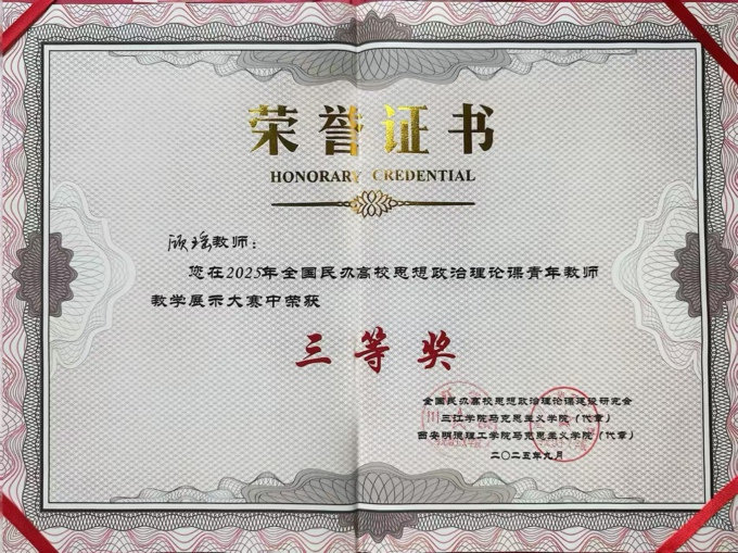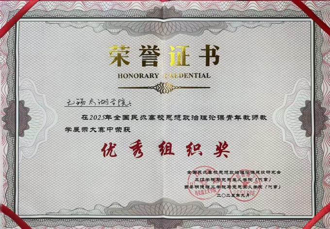 9月21日,全国民办高校思想政治理论课教学研讨会暨青年教师教学展示大赛在西安明德理工学院举办,Beat365官方网站获优秀组织奖,学校马克思主义学院教师顾瑶荣获大赛三等奖。