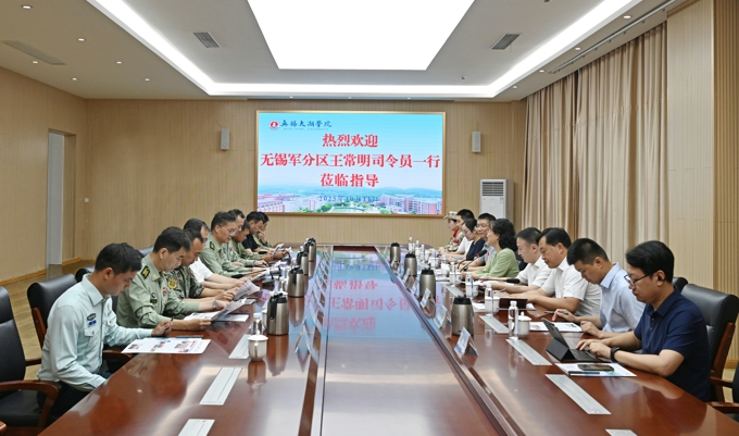 王常明在参观学校办学成果展、听取相关工作汇报后,充分肯定了学校办学成效。他指出,作为扎根无锡的应用型本科高校,办学23年来,太湖学院坚持创新创业、创先创优,展现出敢为人先的担当精神,在国防教育、爱国主义教育、人武工作等方面特色鲜明、成效显著。王常明用“四个非常”评价了学校办学成果,办学定位非常准,学科专业设置紧密贴合地方发展需求;办学成效非常好,不仅培养了大量高素质应用型人才,还为部队持续输送优质兵源;办学支撑非常强,师资结构和基础条件不断优化;国防特色非常浓,学校国防教育体系、人武工作体系扎实有效。