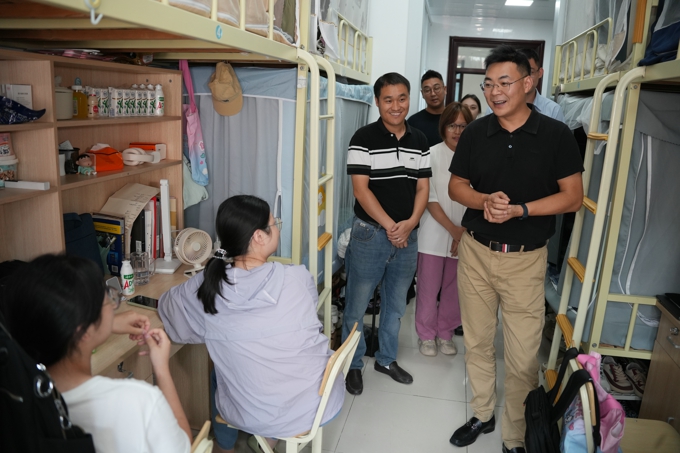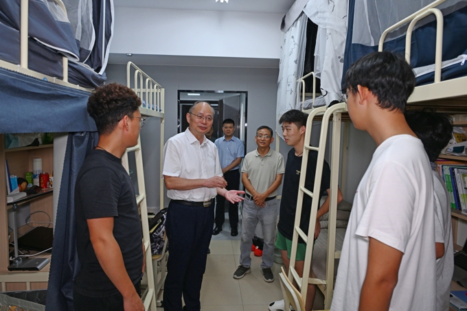 走访期间,学校领导实地调研学校“一站式”学生社区建设情况,与同学亲切交谈,对2025级新生表示欢迎,认真倾听学生诉求,并勉励新生积极融入“太湖大家庭”,争做有理想、敢担当、能吃苦、肯奋斗的新时代好青年。校领导在走访中表示,“一站式”学生社区建设是学校深化育人模式、提升学生管理效能的重要抓手,要以学生为中心,不断完善社区服务保障,共同营造充满活力的学生社会环境。