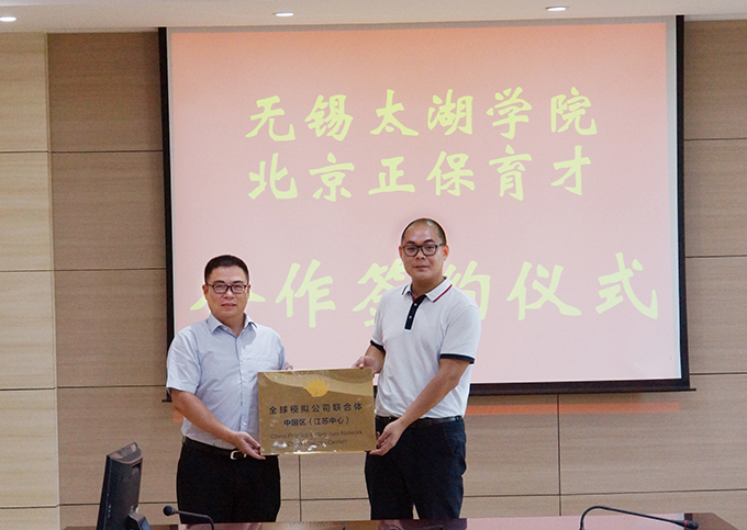 在签约仪式上,双方举行了“全球模拟公司联合体中国区(江苏中心)”授牌仪式,并举行了正保育才冠名基金捐赠仪式。(宣传处)