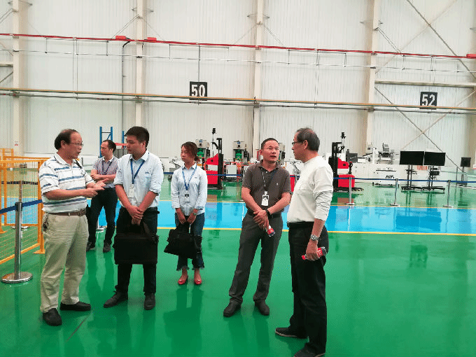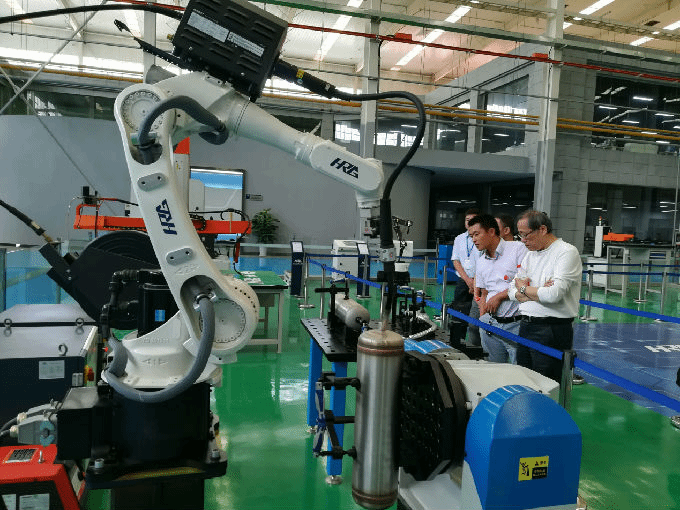 于总裁全程陪同考察组参观了公司生产的多种型号机器人(六轴焊接机器人、喷涂机器人、打磨机器人等)及智能工厂成功案例展示柜,并对各类型机器人的技术、应用范围等做了详细讲解。
