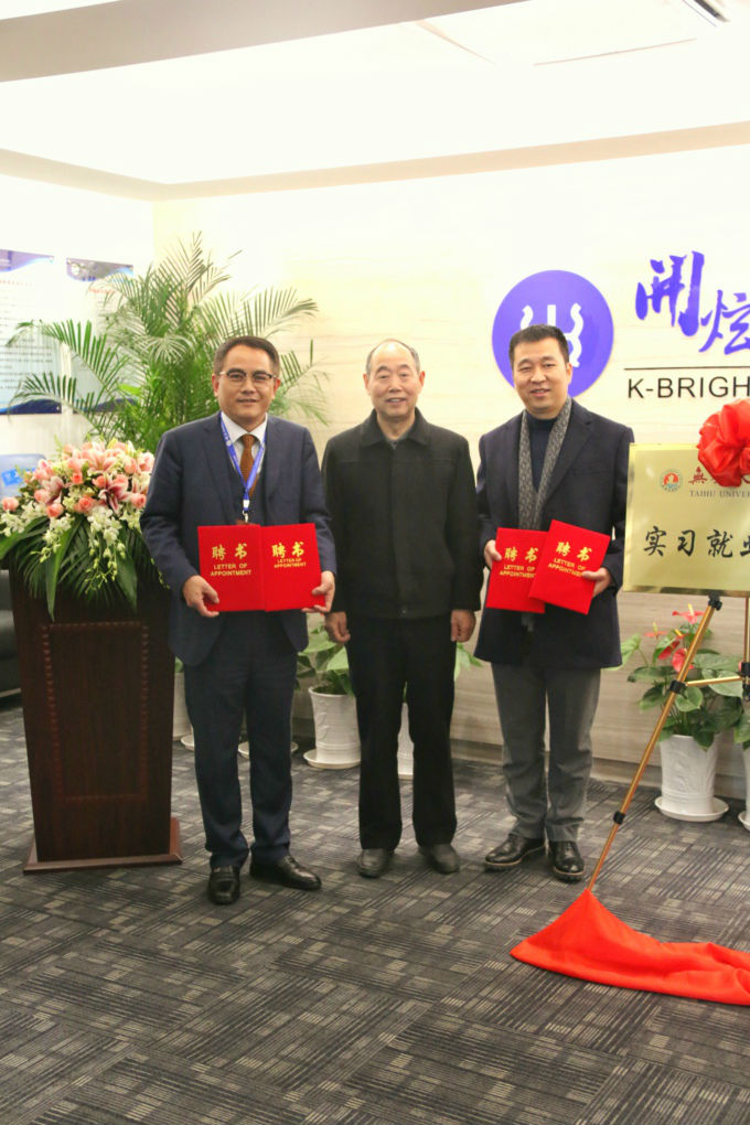 12月7日上午在开炫律师事务所,外国语学院包通法院长、锡山区司法局蔡伟局长与开炫律师事务所虞仕俊主任一起,共同为Beat365法学专业学生实习基地揭牌,并聘请该所虞仕俊、李雄、孟公严、宁飞4位执业律师为法学专业客座教授。