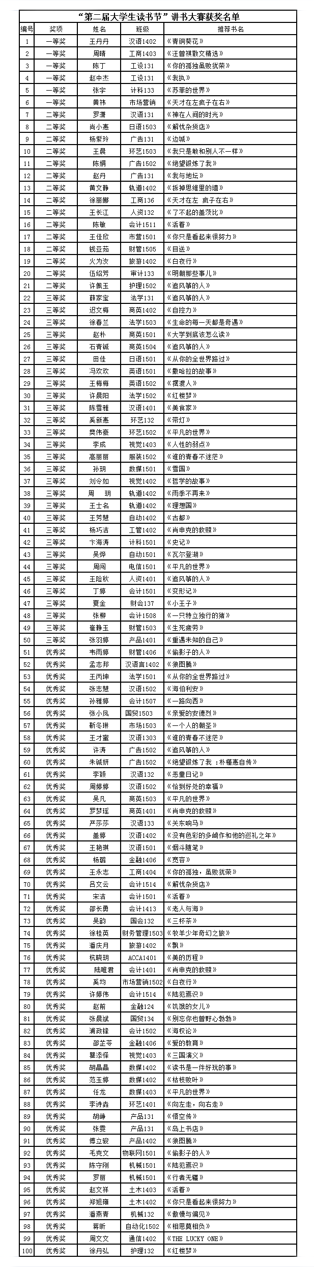 1.“第二届大学生读书节”讲书比赛获奖名单
