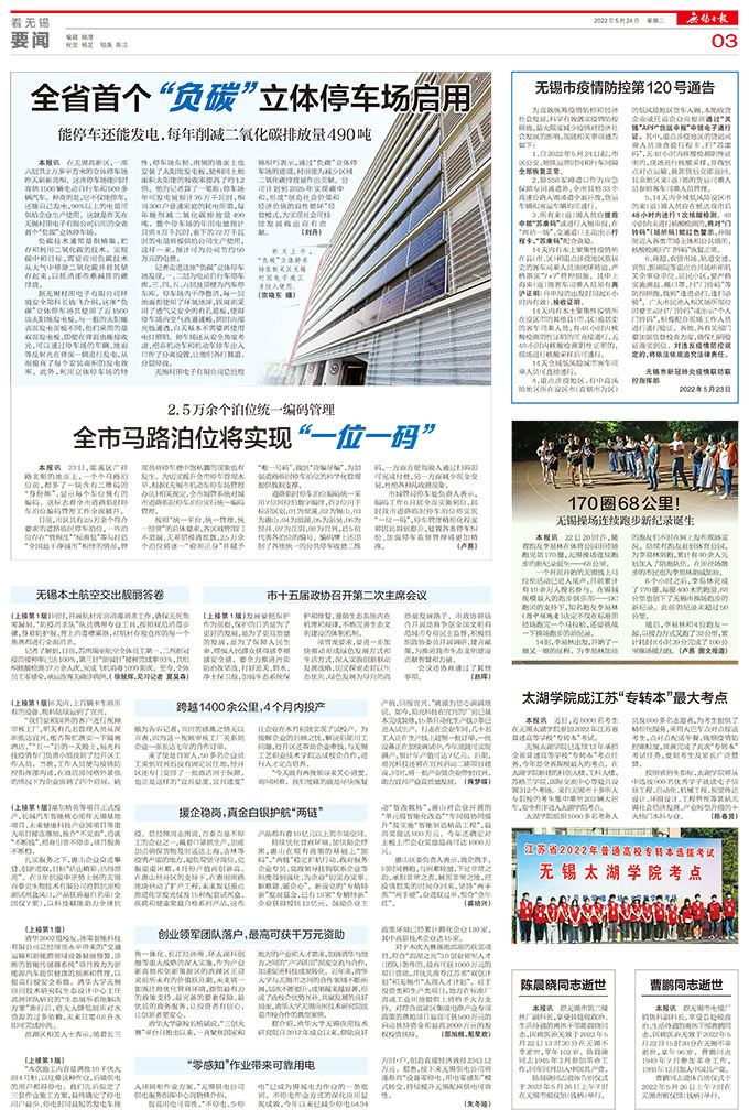 转载自《无锡日报》2022年5月24日第A03版:要闻