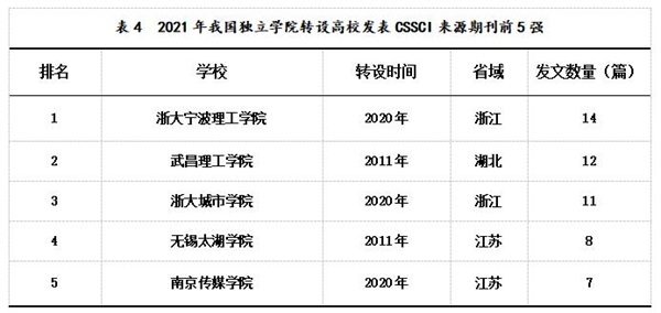 四、独立学院转设高校CSSCI来源期刊论文发表情况