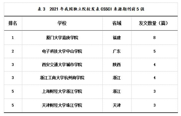 三、独立学院CSSCI来源期刊论文发表情况