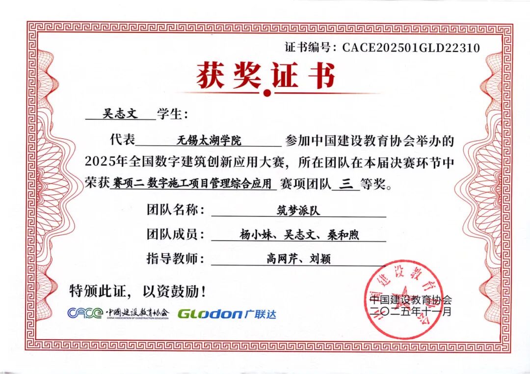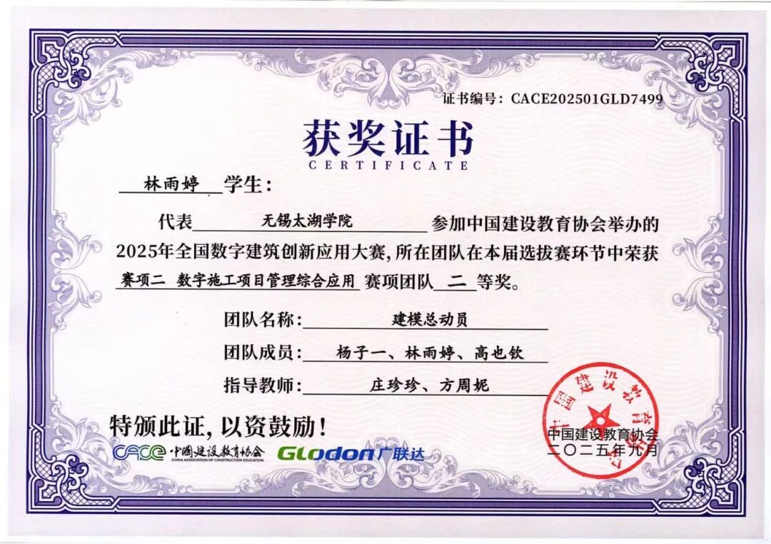 融合本届大赛秉承“以赛促教、以赛促学、以赛促创”的理念,不仅全面检验了智能建造学院学子的专业能力、创新意识与团队精神,也充分展示了学院在数字建筑人才培养和产教融合教学改革方面的丰硕成果。学院通过系统组织学生参赛,将竞赛内容与课程教学有机融合,有效推动了教学改革与实践创新,为建筑行业数字化转型培养了一批具备实战能力的复合型人才。学子们的卓越表现,也为中国数字建筑行业的创新发展注入了青春活力。