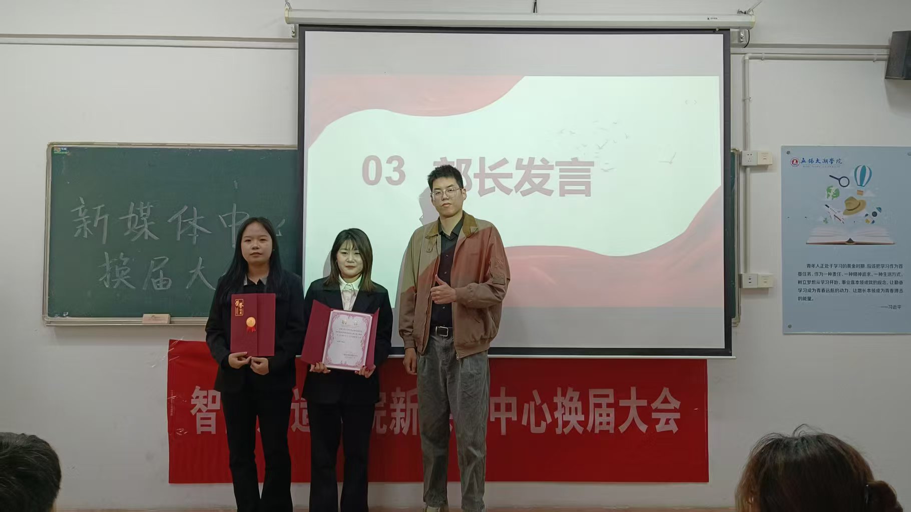 随后,大会进入温馨而庄重的荣誉证书颁发环节。为表彰过去一年里在新媒体中心各项工作中履职尽责、表现突出的骨干成员,李冀湘老师为获奖骨干逐一颁发荣誉证书。这份荣誉既是对大家过往付出的认可,更将激励每一位成员坚守热爱、勇担使命,在新媒体宣传的道路上并肩同行、再创佳绩!