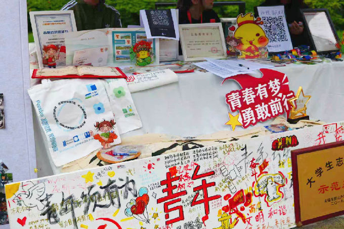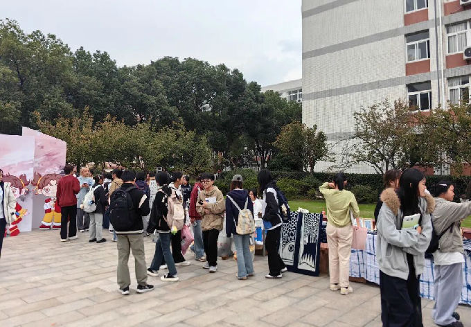 本次文化展以“党建引领筑根基,志愿赋能育新人”为核心思路,精心设置“党建成果展区”“志愿服务成果展区”“红韵流芳家风家训工作室展区”“遗路生花文化育人工作室展区”“太湖光影展区”“草木染研究与创作协会展区”“兰亭书画协会展区”“艺竞创想协会展区”,共八个主题板块。各展区通过实物陈列、图文展示、互动体验、现场分享等多元形式,全方位呈现艺术学院在学风建设、志愿服务、党建工作、文化传承及专业实践等方面的丰硕成果,使师生在参观体验中感受艺术文化。