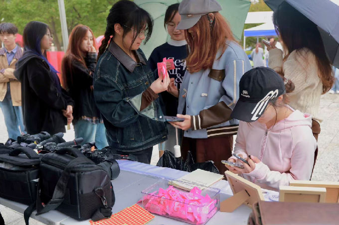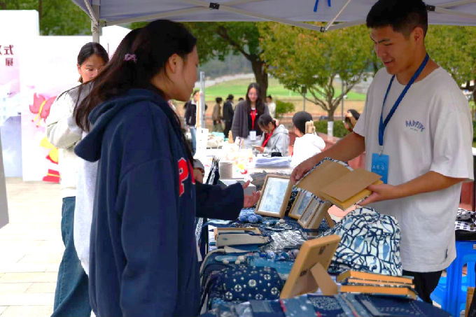 其他五大特色展区则涵盖艺术学院各类专业特色,成为文化展“人气高地”。太湖光影展区由艺术学院摄影专业学生所呈现,每张摄影作品都直击人心。草木染研究与创作协会以各式各样非遗扎染作品成展,并将部分展品送予来参观文化展的师生们作为纪念品,让同学们在工艺体验中理解“非遗匠心”的内涵。