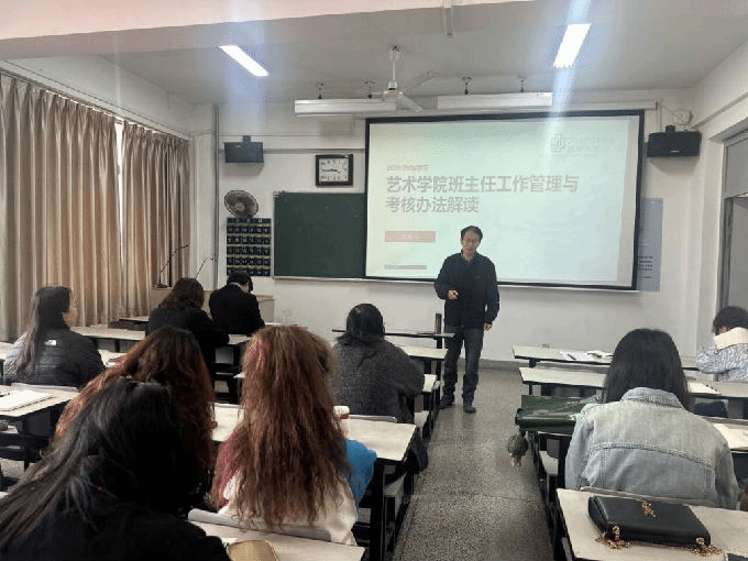 张秋平院长强调,班主任是学生成长成才的重要引路人,要切实履行育人职责,加强与辅导员、家长的协同联动,精准把握艺术专业学生特点,提升工作针对性与实效性。朱宗明副院长就专业教育与学业引导工作提出具体要求,鼓励班主任带领学生多参加学科竞赛,深耕学风建设,助力学生专业成长。