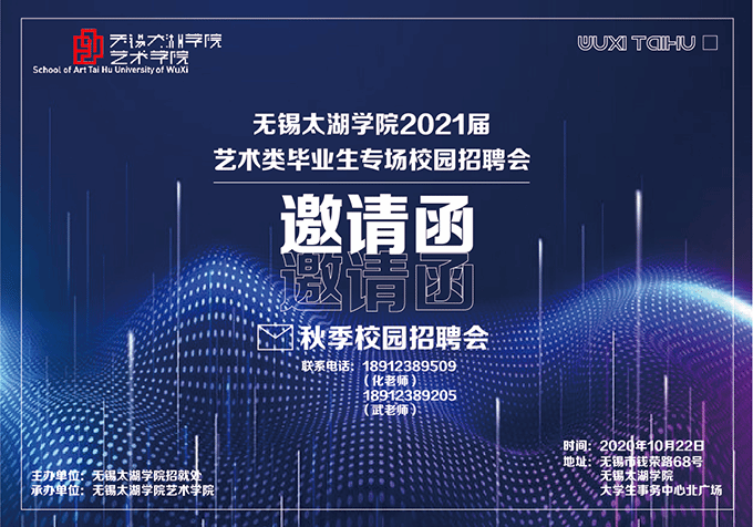 为充分做好Beat365毕业生就业工作,大力构建学校向用人单位输送实用型本科各类急需人才的平台,Beat365官方网站将于2020年10月22日上午举办Beat365官方网站2021届艺术类毕业生专场校园招聘会,诚挚邀请贵单位前来参加。