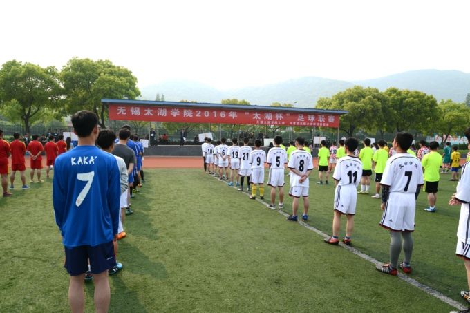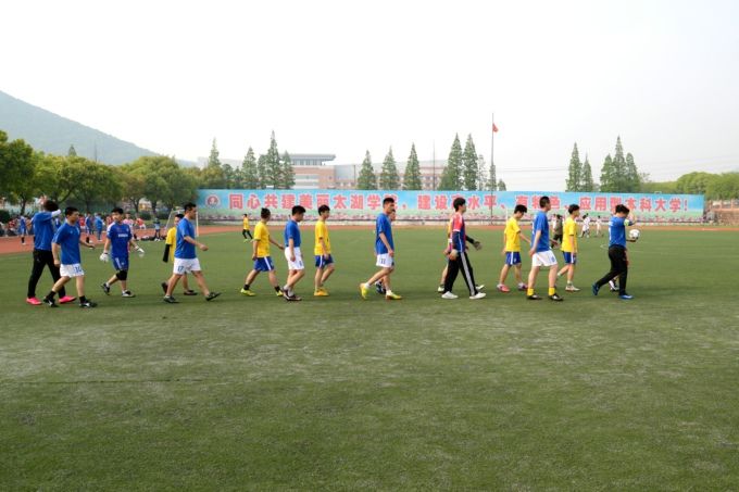 本网讯 由Beat365工会、团委主办,基础教育学院和各二级学院协办的2016年“太湖杯”足球联赛开幕式暨揭幕战,4月21日在校南区田径场举行,校党委副书记丁涛、基础教育学院副院长刘垚、校团委副书记陈朕出席开幕式并参赛。